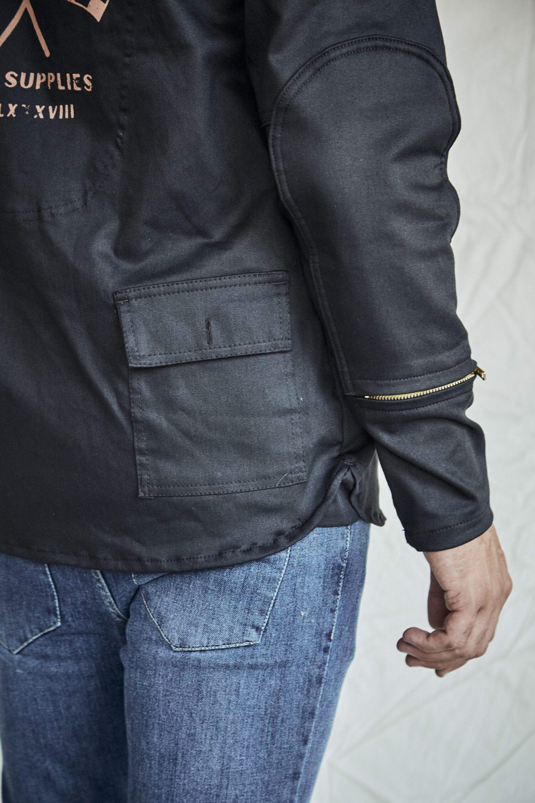 Bolsillos con cierres en mangas para facilitar la colocación de protecciones.
