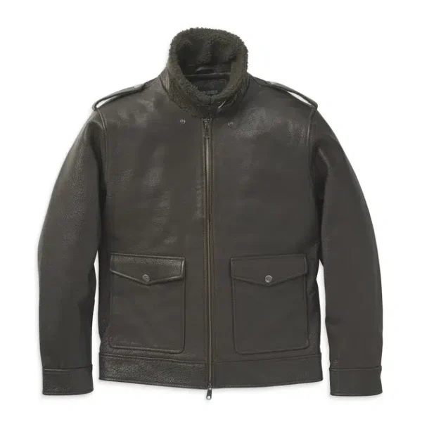 Calidez mejorada con el estilo de marca en nuestra Auer Sherpa Collar Leather Jacket. Fabricada en un generoso corte de piel de búfalo de gran gramaje, con un cuello sherpa de poliéster que imita la calidez y la textura de la lana sin provocar picor. Incorpora los detalles favoritos de las chaquetas de motorista, como las charreteras en los hombros, el cuello oculto con botones de presión y los puños ajustables. Con un distintivo cuello con cierre de correa de cuero y un acabado audaz en la espalda con la marca. Hecho de cuero de búfalo Buff Rub Off de 1,2-1,3 mm, el cuello 100% poliéster Sherpa y su forro Tafetán de poliester 100%.