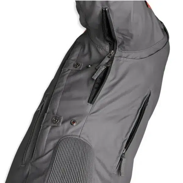 Nuestra chaqueta de motociclista de edición limitada con sistema de triple ventilación y tejido Amalgam ofrece comodidad, funcionalidad y estilo. Su diseño inspirado en las motos está confeccionado con un corte resistente de nailon revestido, espalda flexible y mangas precurvadas, además de nuestro sistema de triple ventilación patentado para mantenerte fresco en la moto. Incluye características adicionales como ribetes reflectantes para mayor visibilidad y bolsillos interiores para guardar tus objetos esenciales de forma segura. Esta chaqueta también cuenta con bolsillos de protección equipados con nuestro D3O® Ghost Armor para una transpirabilidad superior y una absorción de impactos que te hará sentir ligera en la carretera. Su elegante acabado incluye piezas con bloques de color llamativos y la marca bordada. Si te gusta esta chaqueta, agrégala a tu carrito; las existencias son limitadas.