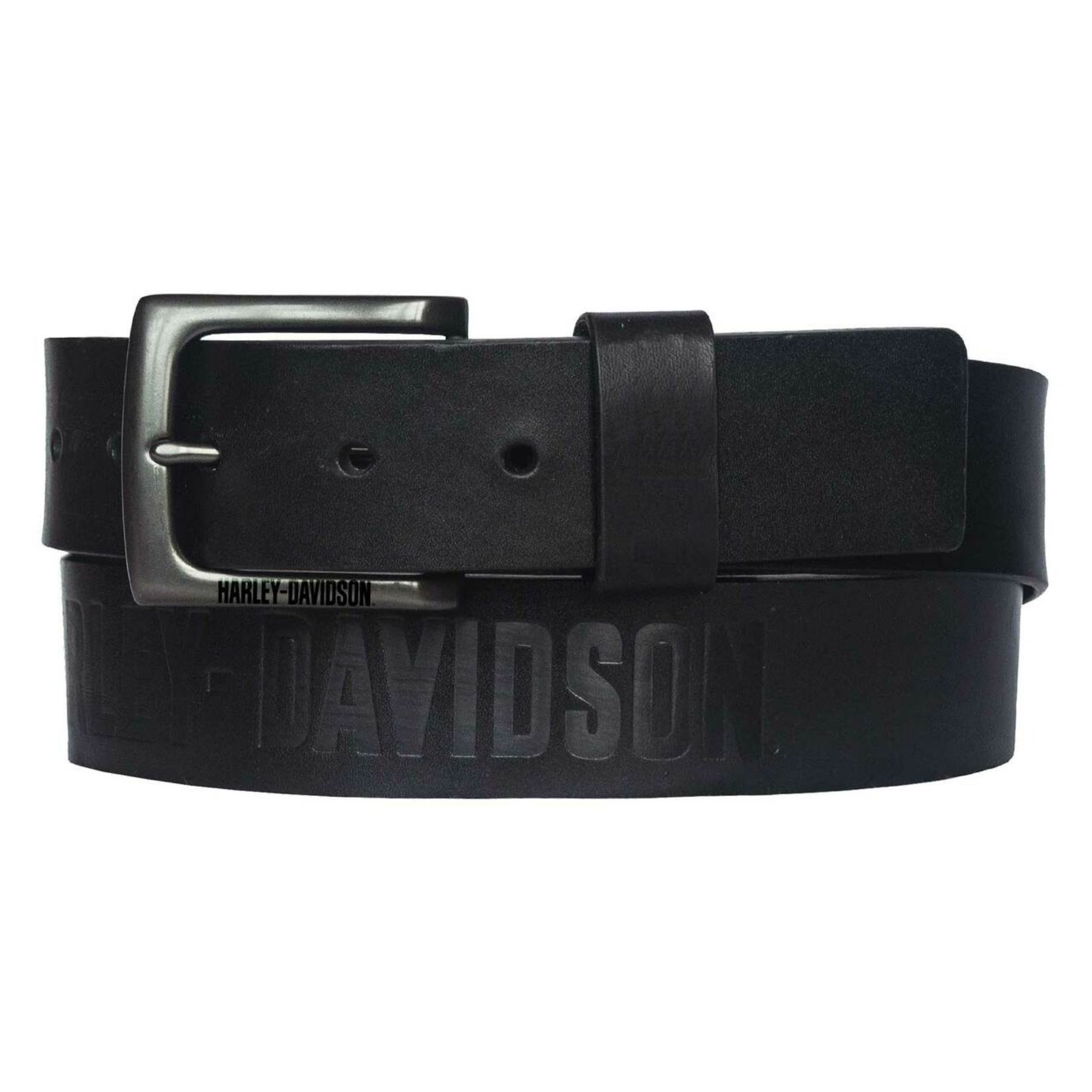 Cinturón H-D Vintage Race de cuero para hombre – Negro. Este cinturón es resistente y está listo para la carretera. Fabricado con cuero vacuno genuino de alta calidad y textura suave, no contiene ni un ápice de cuero sintético. La parte frontal está cubierta con la inscripción H-D en relieve. Acabado en níquel antiguo en la hebilla. Cinturón de cuero de excelente calidad, ¡ideal para los motociclistas que buscan lo mejor! La hebilla intercambiable te permite cambiarla cuando quieras. Ancho estándar: 3,8 cm