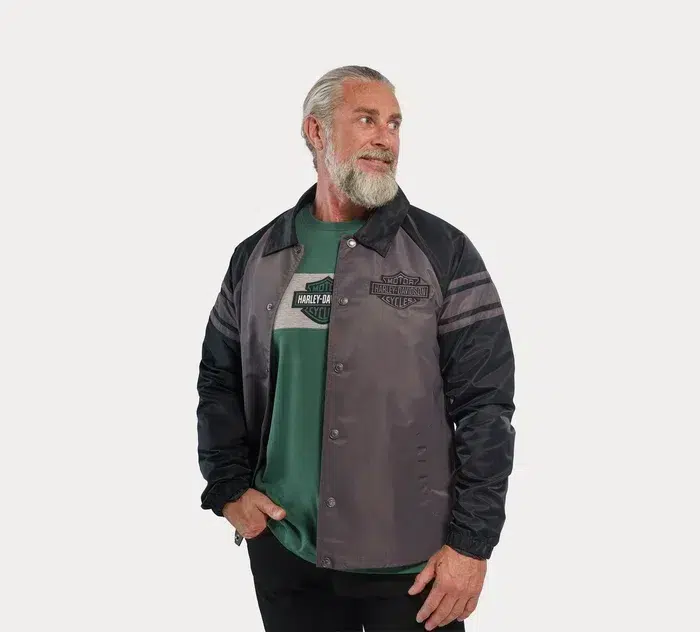 Nuestro legado de carreras va acompañado del estilo deportivo clásico en la chaqueta Coaches n.º 1. Su confección en sarga de nailon es transpirable, resistente al agua y ligera. Esta chaqueta para hombre cuenta con un amplio espacio en los bolsillos, una cinturilla con cordón y un cuello a presión oculto que no se agita mientras conduces. Nuestra marca más icónica adorna el frente, mientras que nuestro logotipo número uno reclama su victoria en la parte posterior.