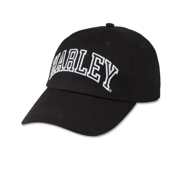 El estilo clásico y deportivo se combina con el orgullo de Harley en nuestra gorra de béisbol estadounidense. Su confección en algodón cepillado es transpirable y suave, mientras que su cierre deslizante de metal es ajustable y se puede llevar en la cola de caballo. Esta gorra para mujer tiene un acabado llamativo con nuestro nombre bordado en letras de estilo universitario en el frente.