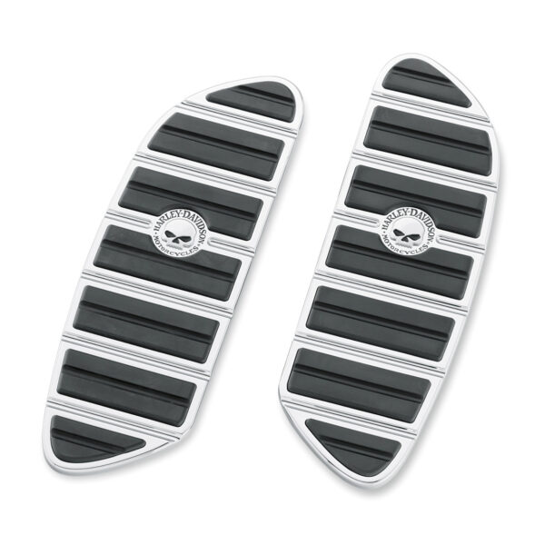 Añade actitud a tu moto. Esta calavera, diseñada para complementar los accesorios Harley-Davidson® Skull, se erige sobresaliente con sus ojos negros amenazantes desde una superficie cromada