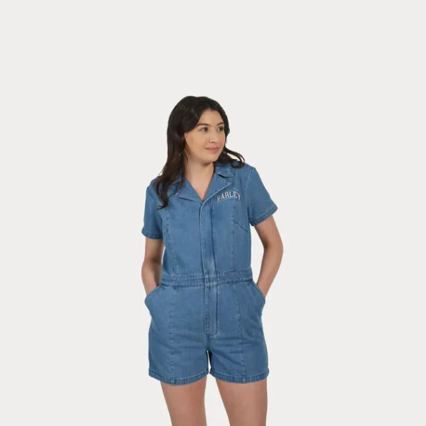 La comodidad relajada se fusiona con el legendario motociclismo con nuestro mono vaquero Hero de edición limitada. Confeccionado en una mezcla de algodón, poliéster y viscosa para mayor durabilidad y ligereza. Esta favorecedora silueta presenta cierre oculto en la parte delantera, cinturilla integrada, corte princesa y cuello con broches ocultos que no se mueve mientras conduces. Su precioso acabado incluye nuestro logo bordado en la parte delantera y nuestro logo más querido en la espalda.