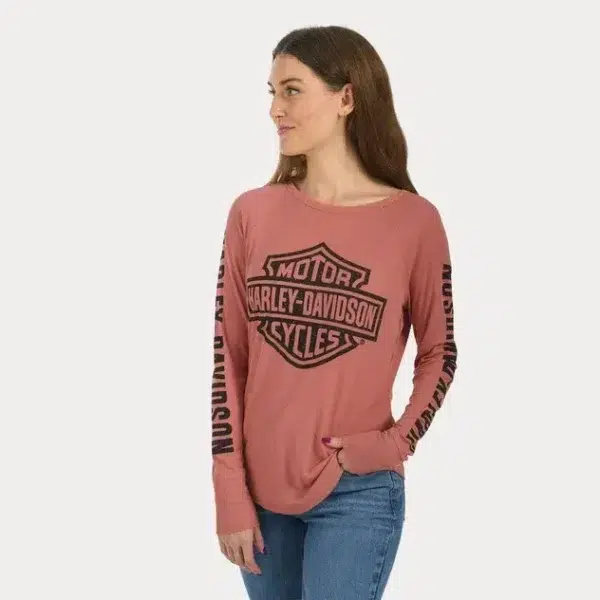 Representa con estilo a la marca de motocicletas que amas con nuestro Authentic Bar & Shield Rib-Knit Top en edición limitada. Confeccionada en suave canalé de modal/poliéster/spandex, esta prenda aporta un aire deportivo sin resultar demasiado llamativa. Un favorecedor dobladillo redondeado y una doble dosis de gráficos estampados (en la parte delantera y en las mangas) añaden auténtico estilo H-D a esta prenda de manga larga para mujer.