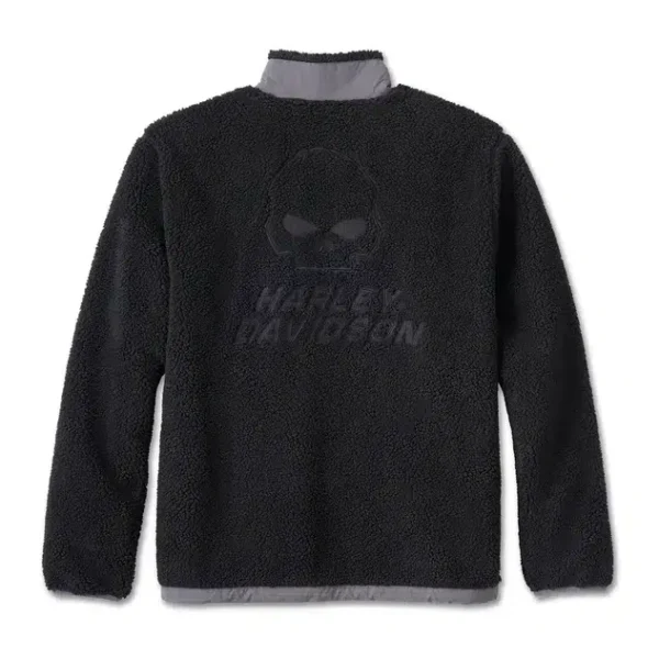 La comodidad de un Sherpa suave se moderniza con el estilo H-D en nuestro forro polar Willie G Skull Prancer de edición limitada. Confeccionado en Sherpa de poliéster grueso con forro polar de algodón/poliéster, es una capa exterior ideal. Este forro polar con cremallera frontal para hombre cuenta con características adicionales para mantener el calor, como puños elásticos, cintura con cordón ajustable y bolsillos calientamanos con cremallera. Su impresionante bordado directo y un parche de PVC le dan un aspecto desenfadado y único de H-D. Un dato curioso: la calavera que luce en la espalda fue creada originalmente por Willie G. Davidson para la Semana de la Moto de Daytona en 2000 y ha sido una de las favoritas de los motociclistas desde entonces.